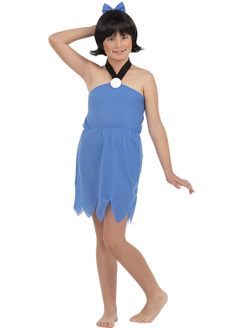 Dieses offizielle Betty Geröllheimer Kostüm für Mädchen besteht aus einem hellblauen Kleid wie das von Betty in der Serie, das mit einem schwarzen Band um den Hals festgebunden ist und dessen Rock mit Zacken verziert ist. Und natürlich beinhaltet es eine schwarze Perücke mit dem gleichen Haarschnitt wie der von Betty Geröllheimer, die von einem kleinen blauen Band, passend zum Kleid, gekrönt wird.