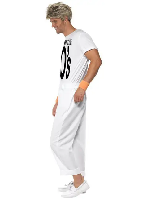 Beinhaltet eine weiße Hose der 80er und ein kurzärmliges Shirt mit der Aufschrift „Made in the 80’s”.