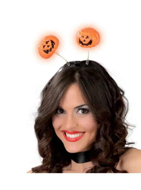 Ergänz dein Kostüm mit diesem Kürbis Diadem mit Licht.