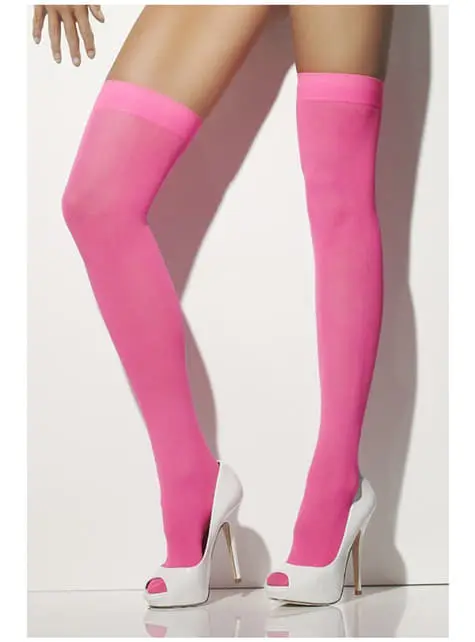 Beinhaltet Overknee-Strümpfe in Neonrosa.