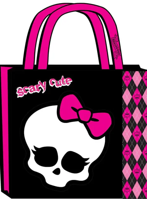 Lieferumfang: eine moderne Tasche in schwarz und rosa, mit dem Totenschädel-Logo von Monster High
